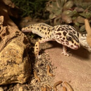 Unsere Leopardgeckos haben ihr Terrarium neu eingerichtet bekommen. Jetzt erkunden sie alles ganz neugierig 🦎